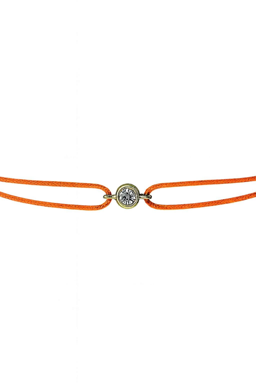 1. Bracelet en diamant 2mm  serti d’or 18 carats, cordon orange.