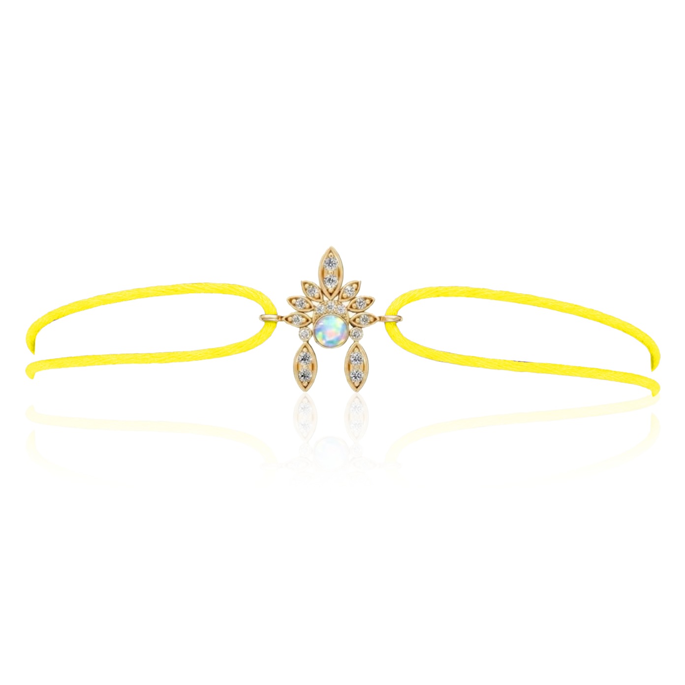 Bracelet en or 10 k , opale et diamants naturels sur cordon jaune.